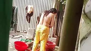 Neighbor Bengali Aunty Bathing Outdoor Caught On Camera mp4 porn